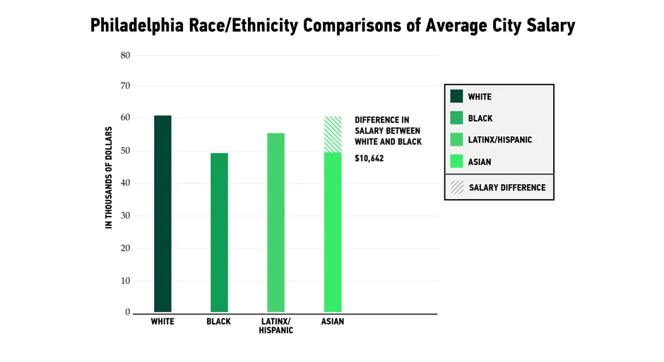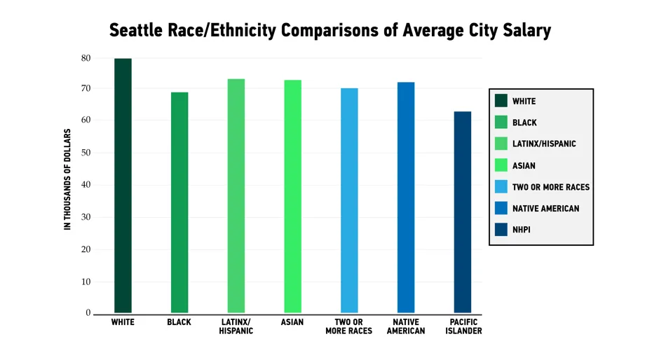 但波士顿似乎没有收到这个通知。在那里,非裔美国人所占的年薪低于40,000美元的城市政府职位比其他任何种族都要多。但一旦职位的薪水超过40,000美元,种族差距便会全力显现,且方向相反,大多数这些职位都归白人工人所有,而黑人工人所占的比例则远低。随着薪水的增加,种族工资差距只会加剧。波士顿的家庭中位收入为78,800美元,但只有大约20%的非裔美国城市政府工作人员的薪水在这个范围内,而白人工人的比例约为三分之二。