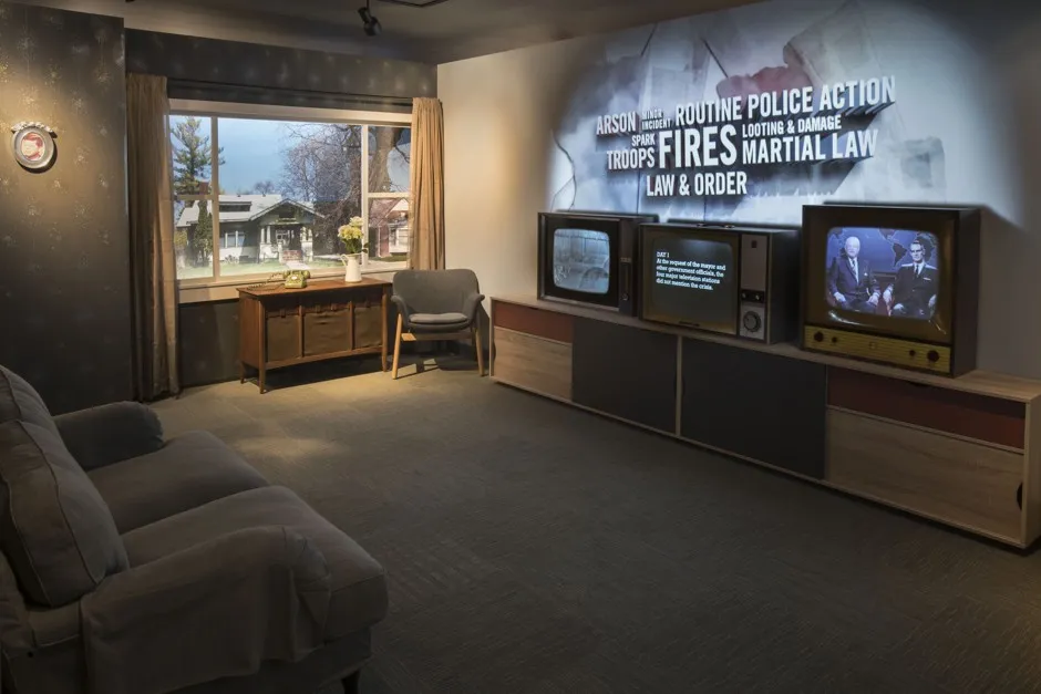 底特律历史博物馆的策展人并没有轻易决定如何表现暴力。斯通表示,展览导演甚至辩论过展览中将涉及哪些感官,包括是否会唤起烟雾的气味。(他们最终决定不这样做。)“可用的文物不多:剩下的只有枪支和警棍,”斯通说。“我们不想让它变得丑陋和低俗。”