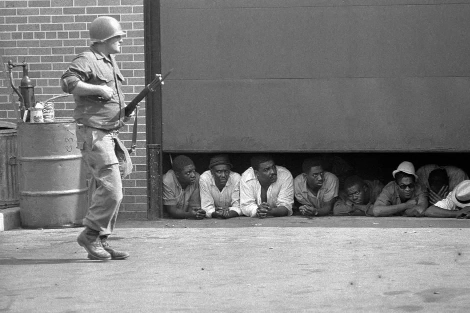 在这张1967年7月24日的档案照片中,国民警卫队士兵停在一辆消防车旁。美联社照片/档案随着暴力的蔓延,300名密歇根州警察被叫来。当暴力在周一加剧并导致16人遇害时,当时的州长乔治·罗姆尼下令密歇根州陆军国民警卫队进入该地区,林登·约翰逊总统派遣了第82和第101空降师。在五天的时间里,共发生了约483起火灾和超过7,000人被捕。这些火灾中,白人、黑人和移民拥有的商店和餐馆被烧毁,许多商店再也没有重建。