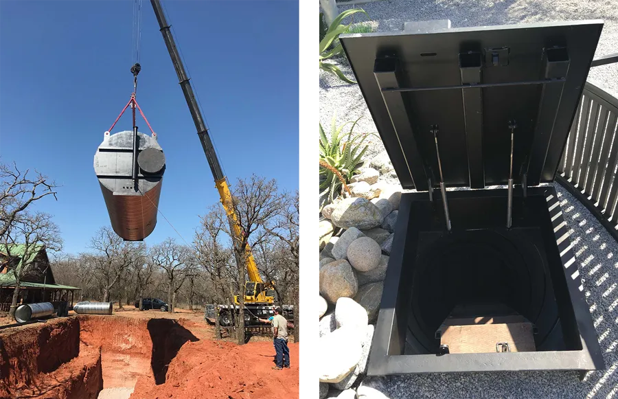 左侧:一个阿特拉斯掩体被降入地下。避难所配有一个带轮柄的防水门。| 右侧:阿特拉斯掩体的爆炸舱是主要入口。通往主掩体的楼梯以30度角下降,以偏转伽马辐射。来源:Ron Hubbard,阿特拉斯生存避难所与阿特拉斯生存避难所类似,位于德克萨斯州默奇森的地下避难所制造商Rising S Co.也遭遇了大量询问。总经理Gary Lynch表示,过去三周对其钢制产品的询问量翻了一番,其中80%来自日本。