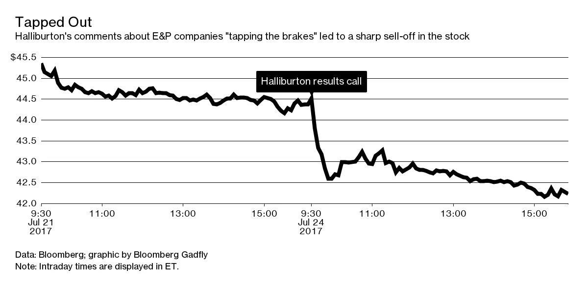 彭博社商业周刊他们不是隐士。寻求庇护者占据了拜登承诺关闭的监狱美国正在用寻求庇护者填满臭名昭著的前监狱大学橄榄球需要向大联盟学习一课影响者兄弟销售的棒球棒比专业人士还多至于哈里伯顿,抛售似乎过度。尽管美国钻探的反弹已经放缓,但哈里伯顿在井完工方面具有竞争优势。正如我在 这里 所写,已经积累了大量钻探但未完工的井,或称DUC,部分原因是像哈里伯顿这样的设备和服务供应商已经售罄。考虑到页岩油价格在狂喜与绝望之间的相对狭窄范围 -- 大约每桶40到60美元 -- 今年晚些时候可能会有钻机停工,从而为2018年重新投入工作铺平道路。正如安达科石油公司周二对指导方针的微妙调整所示 -- 该公司维持了页岩油的增长目标 -- 踩刹车并不等于关闭引擎。