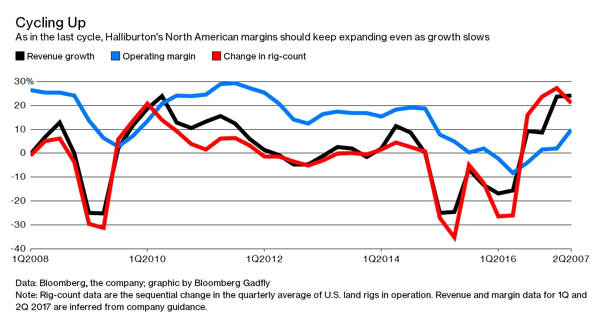 即使北美的收入增长随着钻机数量的减少而放缓,哈里伯顿的利润率仍应保持上升,部分原因是它 已经承担了将人员和设备重新投入工作的许多痛苦: