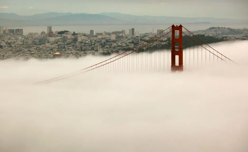 雾今天还有一个实用的方面。夏季的雾霭——由 湿润的海洋空气与季节性较冷的沿海水域和变化的风相遇,并通过 宜人的地理环境 进入湾区——可以迅速将愉快、明亮的外出转变为在 寂静岭 街道上的挣扎。游客们常常听到那句 错误 归于马克·吐温的名言:“我度过的最冷的冬天是在旧金山的一个夏天。”