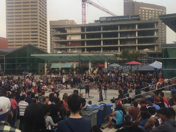 人们聚集在丘吉尔公园的埃普科尔音乐厅周围观看街头表演者。安德鲁·斯莫尔/城市实验室尽管如此,我在埃德蒙顿游荡时感觉到我的城市体验中缺少了什么:人。市中心似乎太大,以至于街上只有这么少的人。关于埃德蒙顿的另一个流行说法是它是“加拿大的节日城市。” 这在夏季尤其真实,当这个冬季城市产生一种街头生活的淘金热时。(七月底的K-Days节日暗指1890年代的克朗代克淘金热。)但直到我转向市政厅和阿尔伯塔艺术画廊附近的丘吉尔公园,我才看到这一埃德蒙顿现象的实际情况:一大群来自各种背景的人们,观看一位墨西哥移民在国际街头表演者节上做体操。从那里看,埃德蒙顿似乎是一个足够小的城市,人们可以相互认识——但又足够大,能够欢迎新来者。埃德蒙顿的问题是:在大潮过后,他们能否让足够多的人留下来?