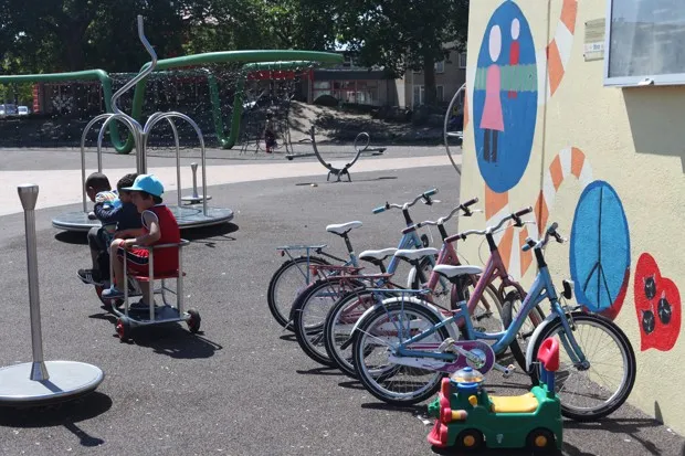 这是该市24座此类小建筑之一。它们位于游乐场旁边,为4到12岁的孩子提供借用玩具、游戏和自行车的机会。当天气好的时候,外面有时会设置小泳池和充气城堡,而在下雨天,孩子们可以在室内进行手工艺和游戏。