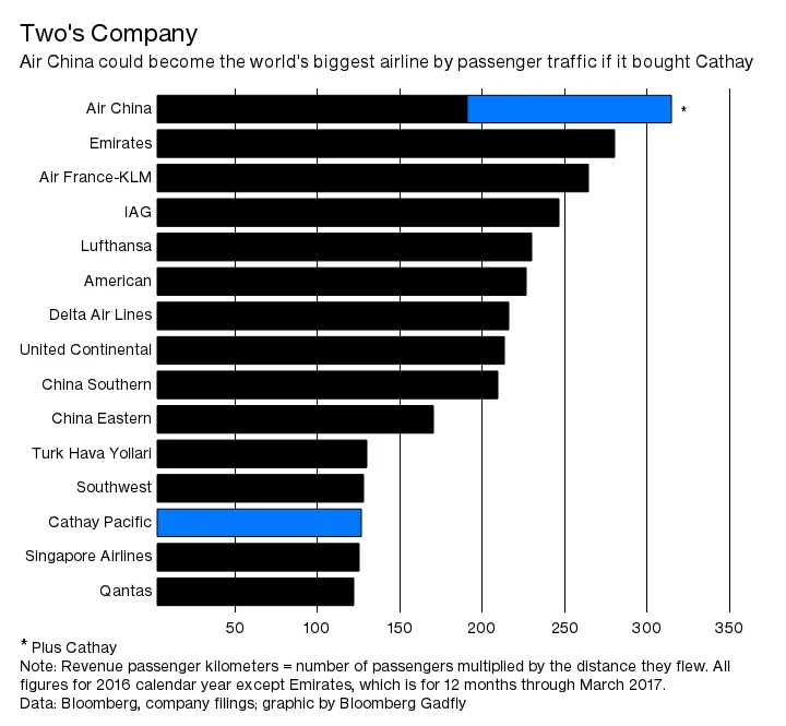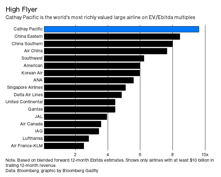 尽管国泰航空正面临连续第二年的亏损,但它现在是全球主要航空公司中估值最高的。没有交易,很难看到当前估值的上行空间。但是,北京会为结束一家仍由英国贵族经营的领先中国航空公司的国家屈辱支付什么代价呢?天空是极限。