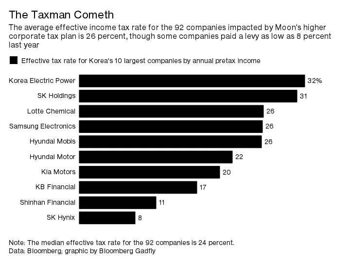 轻微的企业税增加使文在寅看起来在打击这种特殊待遇,而实际上只是轻微削减了公司的利润。
