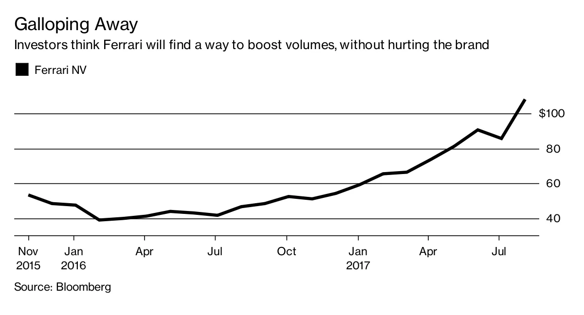 彭博社商业周刊没有被监禁的儿子。寻求庇护者占据拜登承诺关闭的监狱美国正在用寻求庇护者填满臭名昭著的前监狱大学橄榄球需要向大联盟学习一课销售比职业选手更多棒球棒的网红兄弟们首席执行官抗议得太多。在2015年的首次公开募股中,马尔基翁尼将法拉利的跃马品牌作为一个奢侈品牌,认为其估值更接近手袋制造商爱马仕国际,而不是像宝马这样的金属加工商。而他成功了。法拉利的股票在过去18个月中已经翻了三倍多,现在的交易价格是未来收益的34倍。爱马仕是38倍,而宝马仅为未来收益的七倍。