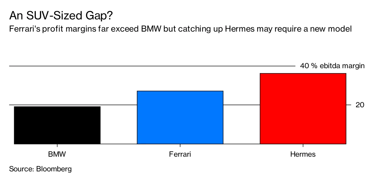 然而,即使销售几千辆法拉利的多功能车也可能非常有利可图。如果法拉利将去年的大约8,000辆销量翻倍,“我们可以把爱马仕的Ebitda利润率搞得一团糟,”马尔基翁内说。
