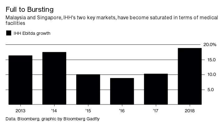 IHH似乎在押注香港也是一个增长的热点。它在三月在那里开设了一家500张病床的医院,并希望 固定价格套餐 能够吸引预算有限的客户。但是,随着 房价飙升,许多城市的居民可能更愿意选择更便宜的公立床位。此外,香港是一个发达市场。例如,在美国,医院的交易仅为7.4倍的企业价值/息税折旧摊销前利润(EV/Ebitda),根据彭博情报。