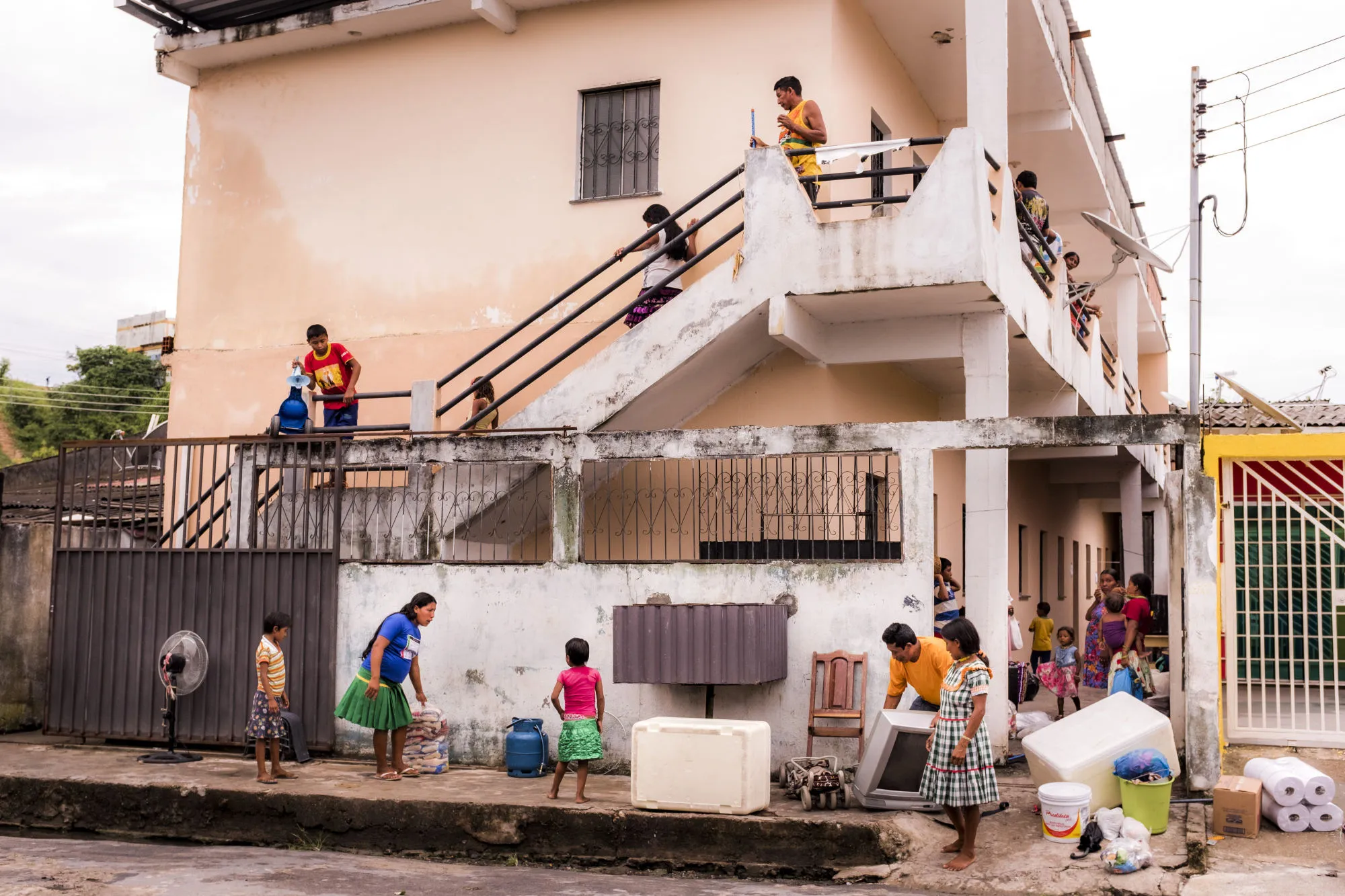 在这个七月的下午,当地政府正在将数十名瓦拉奥人迁移到一个名为“新城市”的公寓楼临时住所,恰如其名,Cidade Nova——葡萄牙语中的“新城市”。在他们行驶的过程中,倾盆大雨将水流向马瑙斯的海滨,那里里奥·内格罗河汇入亚马逊河。“太阳不可能整天都照耀,”基诺内斯用他第二语言的蹩脚西班牙语说。“必须下雨,植物、动物和人才能不太热。”