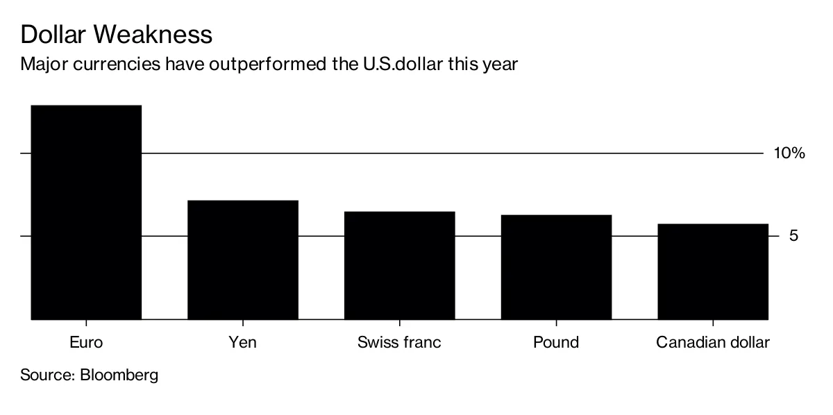 摄影师:Krisztian Bocsi/Bloomberg自2011年以来,美元在对欧元的表现上处于最糟糕的状态。这对欧洲中央银行刺激经济增长和将通胀恢复到目标的努力来说是一个头痛的问题——这使得许多投资者处于脆弱的境地。