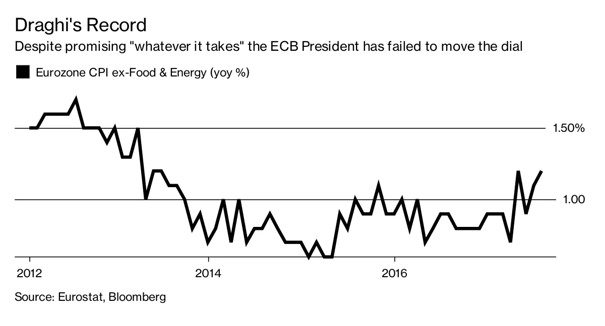 无论如何,推迟是有充分理由的。经济复苏尚未稳固建立。尽管欧洲央行的资产负债表超过4万亿欧元(4.7万亿美元)——核心通胀仅从0.9%加速至1.2%。这并不能令人鼓舞地期待消费者价格的持续回升,从而将关键利率推至略低于2%的目标并保持在那里。