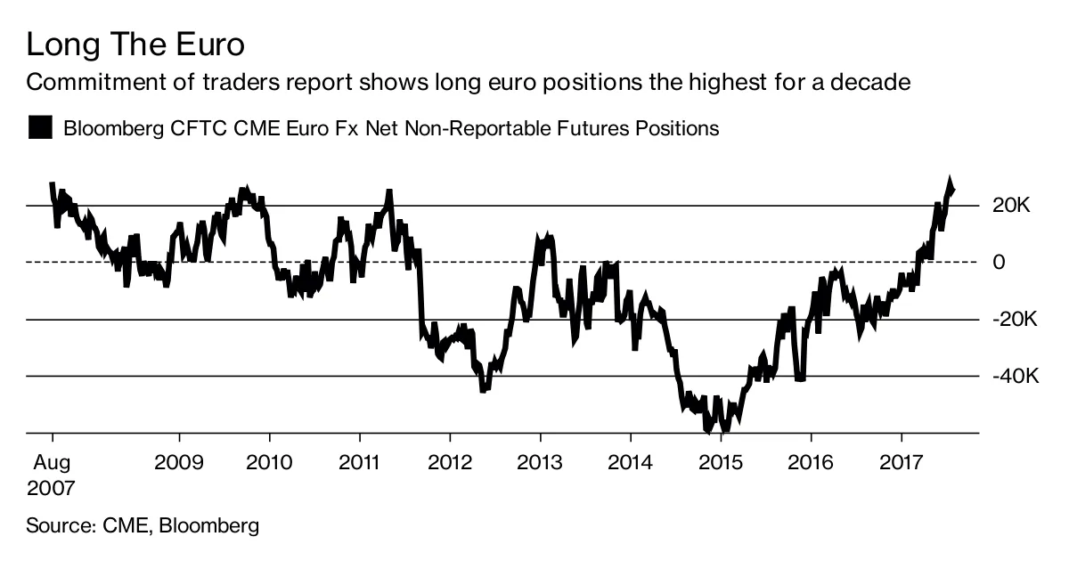 彭博社商业周刊没有被监禁的人。寻求庇护者占据了拜登承诺关闭的监狱美国正在用寻求庇护者填满臭名昭著的前监狱大学橄榄球需要向大联盟学习一课销售比职业选手更多棒球棒的网红兄弟们当然,投资者正在押注当前趋势将继续——市场在欧元期货合约中持有接近纪录的多头头寸。如果货币的方向发生变化,这可能会急剧逆转。尽管有热核战争的威胁。