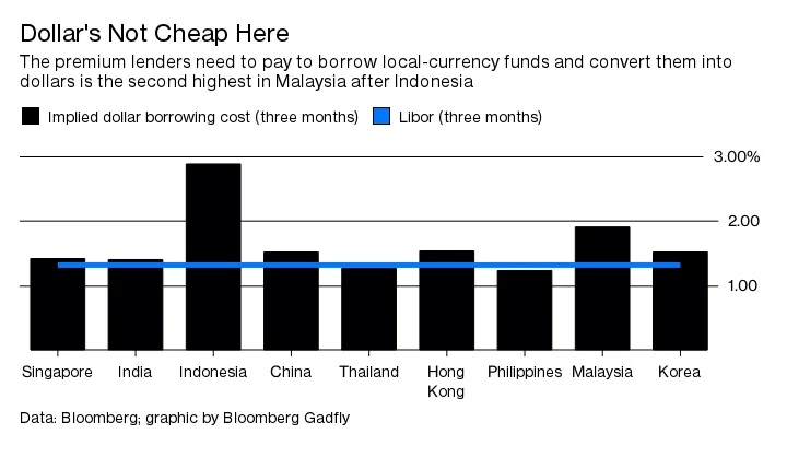 对外币债务的日益依赖是不利的。在本地银行间市场借入三个月的资金,并利用这些资金在同一时期购买美元,马来西亚的贷款机构成本为1.9%,比Libor高出60个基点。在亚洲,短期美元融资的溢价仅对印尼银行更高。然而,与马来西亚同行不同,印尼银行有充足的利差空间。