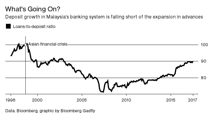 问题在于存款,或者更准确地说,是存款的缺乏。正如CIMB集团控股有限公司分析师温森·吴所指出的,银行业的贷款与存款比率从2012年2月的76%上升到6月的90%。根据该贷款机构的新闻稿,马来亚银行(Maybank)的比率为94.7%。1502675986894