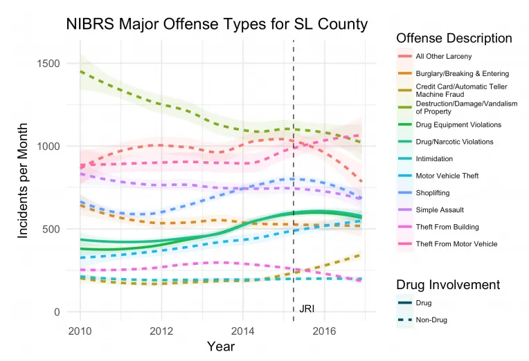 为了找出答案,犹他州县协会最近委托了一项研究,调查该地区过去几年的犯罪趋势。由犹他大学索伦森影响中心的研究人员分析的数据表明,这个问题重重的社区的故事远比看起来复杂得多。