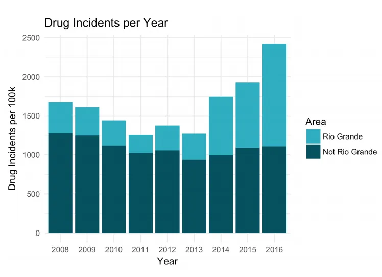 但没有足够的证据来支持这一说法。虽然数据确实提供了对问题重重的里奥格兰德社区的有趣一瞥,但它告诉我们的是更多的执法活动,而不是其他。“执法程序的变化与实际行为的变化有多少——这是我们仍在努力理清的事情,”犹他州县协会政府事务主任林肯·舒尔茨告诉CityLab。