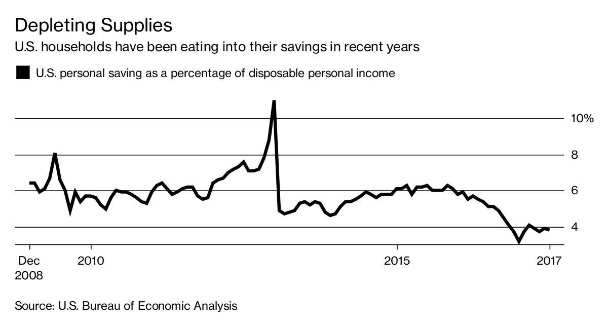 这些储蓄率“历史上相对较低,”FS Investments基金战略高级经济学家拉拉·瑞哈梅说在周二的彭博电台采访中。“你必须考虑你将从哪里获得消费资金。这要么来自工资和收入,要么来自你的储蓄。”