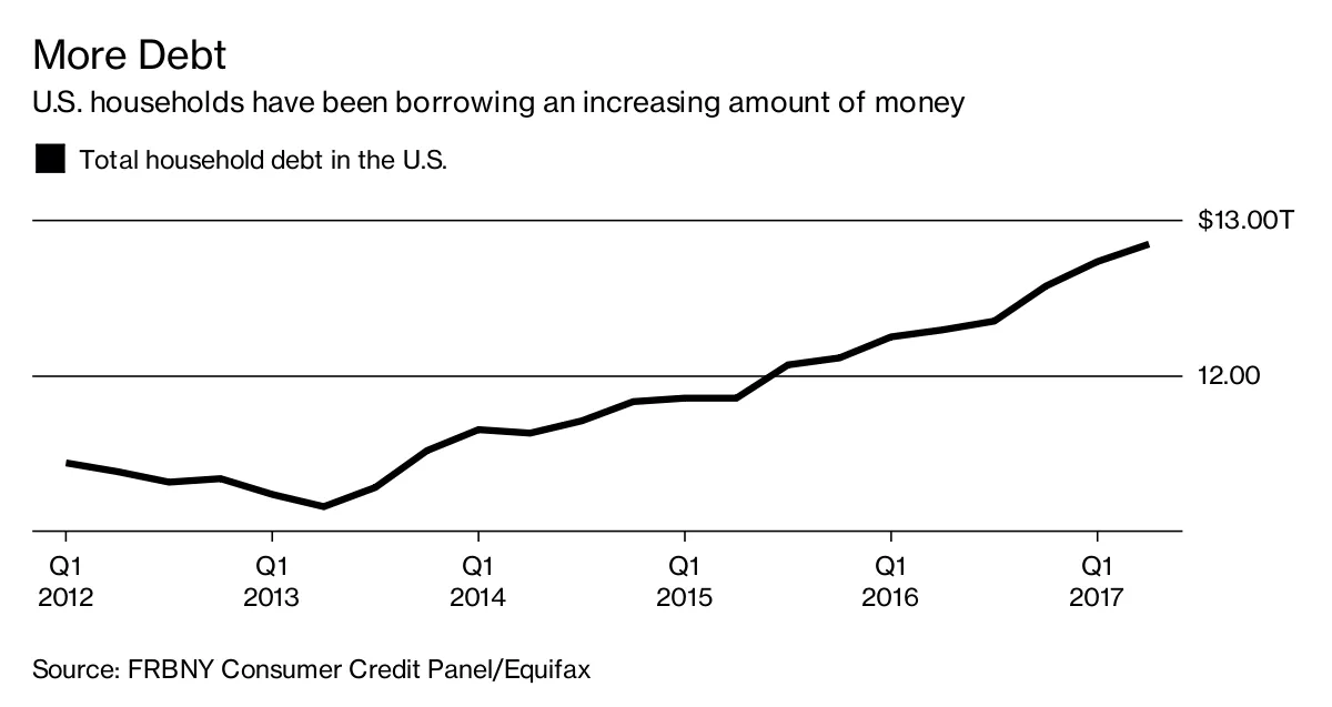 彭博社商业周刊没有人是隐士。寻求庇护者挤满了拜登承诺关闭的监狱美国正在用寻求庇护者填满臭名昭著的前监狱大学橄榄球需要向大联盟学习一课销售棒球棒的网红兄弟们比专业人士卖得还多首先,他们的债务在增加。根据纽约联邦储备银行周二发布的数据,家庭在过去一年中的借贷速度是经济扩张以来最快的。他们现在的债务总额创下纪录,达到12.8万亿美元,比一年前增加了5520亿美元。