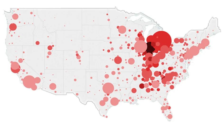这可能并不令人惊讶,但目前几乎一半的机器人都集中在中西部和南部——在密歇根、俄亥俄、印第安纳和田纳西等州,这些州是汽车工业的发源地。在城市中,底特律名列前茅,每千名工人中有8.5个机器人。其次是托莱多、格兰德拉皮兹、路易斯维尔和纳什维尔——这些制造中心的工厂机器人数量在2010年至2015年间增加了三倍。