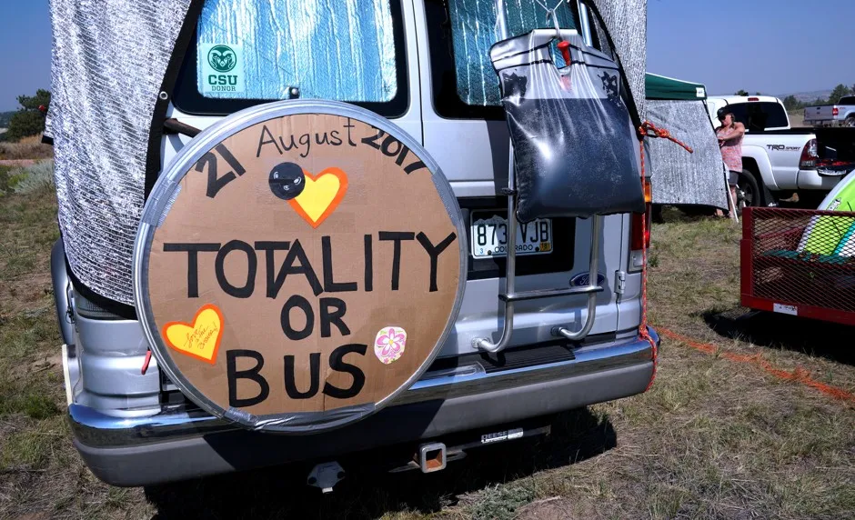 一辆停在指定日食观赏区的小巴在怀俄明州的一个露营地被看到。Rick Wilking/路透社**末日的日食:**今天的日全食正在引发《纽约时报》所称的“伟大的美国公路旅行”。随着美国人涌向全影路径,主要城市(包括圣路易斯、纳什维尔和南卡罗来纳州的查尔斯顿)正在为因星空游客造成的交通繁忙做好准备,并计划举办音乐节和烤猪活动。