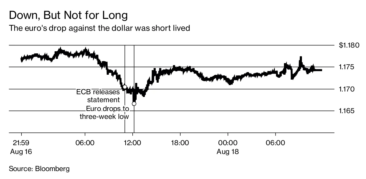 这是一项迟来的干预。在银行7月会议后的新闻发布会上,德拉吉忽视了抱怨货币强势的机会,仅表示“汇率的重新定价引起了一些关注”。