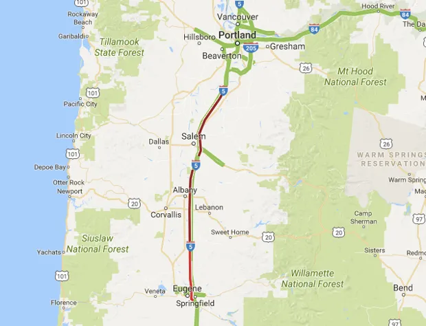 离开俄勒冈州塞勒姆的重型交通在两个方向上。谷歌地图周末可能为即将到来的日食交通提供了缓冲,允许观众缓慢而稳定地涌入。但由于前方有长途驾驶和明天的工作,他们中的许多人显然在太阳重新出现后立即跳回了车里。