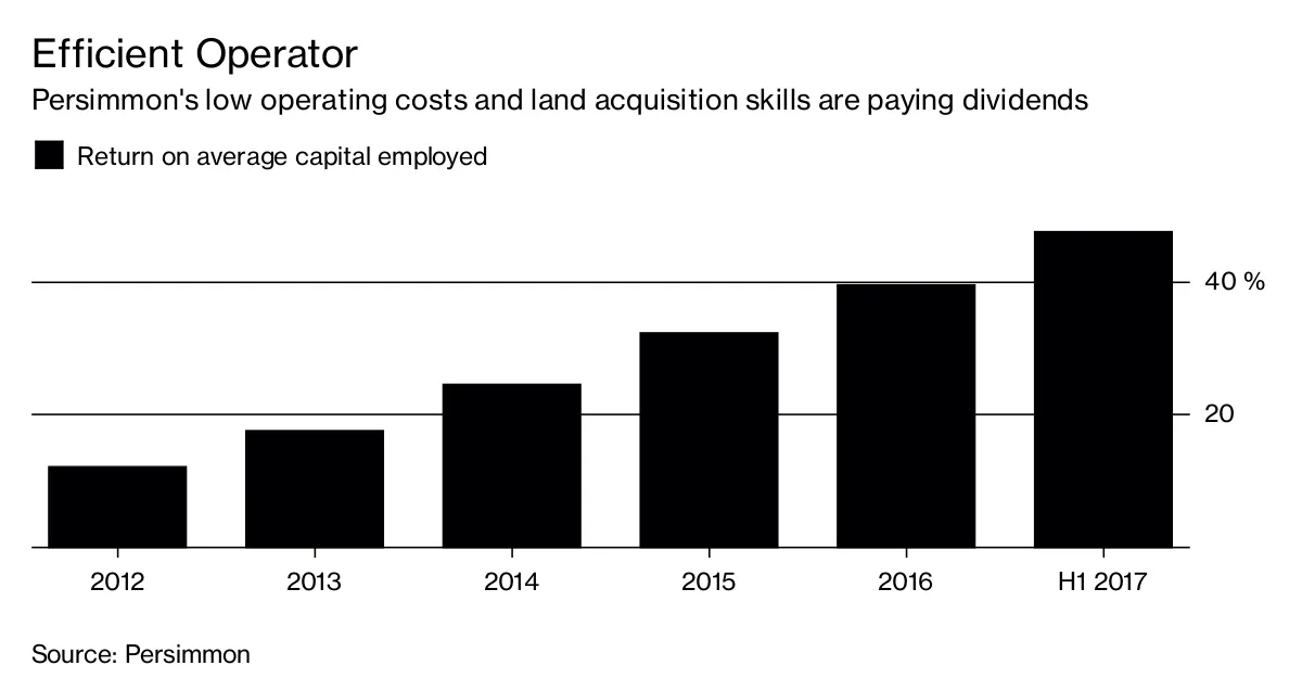 毫无疑问,Fairburn的工作做得相当不错——公司擅长以低价获取土地,并控制建筑成本,从而提高资本回报率(这一指标在最新的六个月期间上升至惊人的47%)。1503401913874 管理层和投资者的利益高度一致,难道还有什么不好的吗?