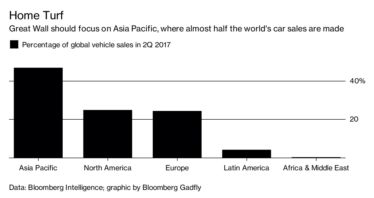 目前,长城汽车99%的销售来自中国,但该业务实际上非常适合新兴市场,在这些市场中,控制成本以保持价格低廉至关重要。