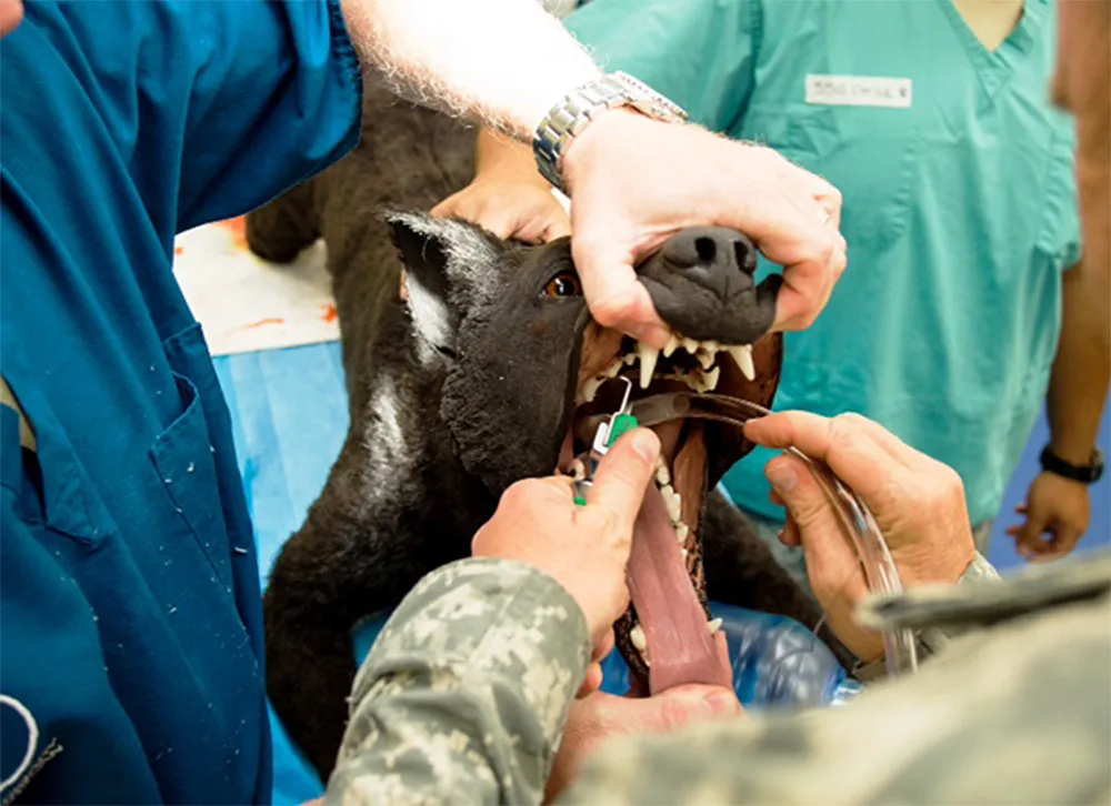 而这并不是一项简单的任务。在 Mission K9 安置的数百只四条腿的士兵中,60%因受伤而退役——并不是因为它们太老了。“它们撕裂韧带,损坏髋关节,得了侵袭性脊柱病,似乎某种原因下癌症的发病率更高,”布莱恩特说。