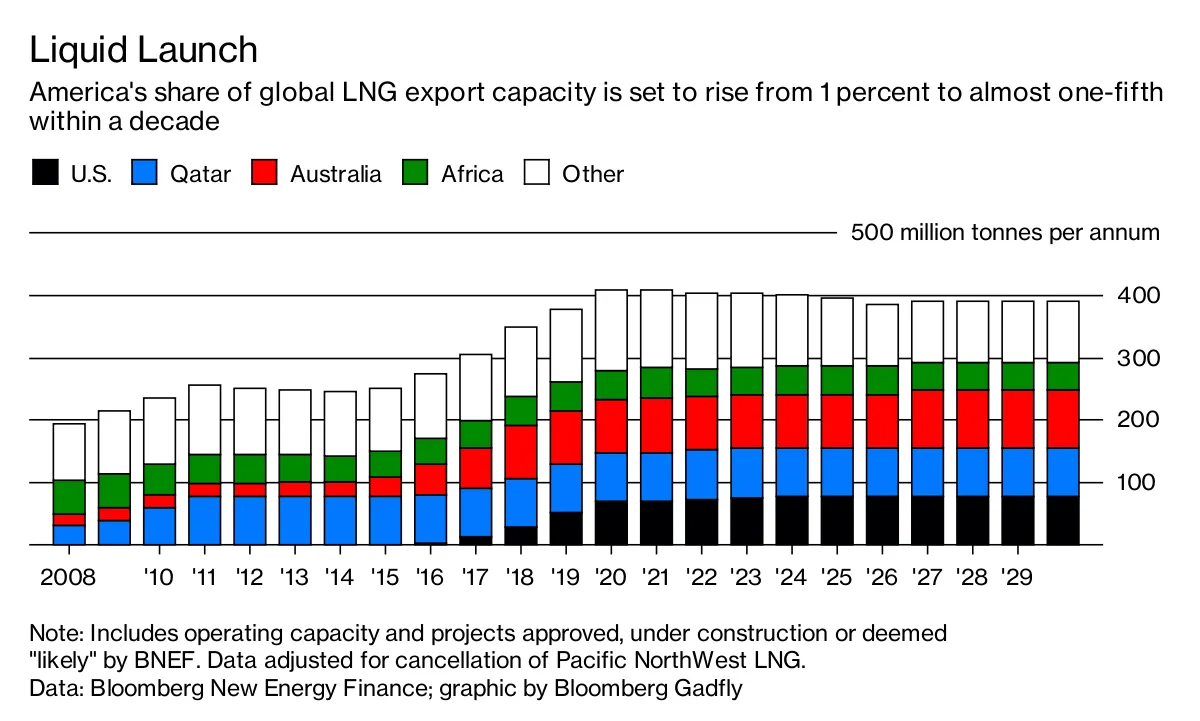 从长远来看,墨 Gulf 对全球能源贸易的重要性将对天然气产生更为显著的影响。页岩气的繁荣已经压倒了国内需求,美国将很快成为液化天然气出口的主要来源: