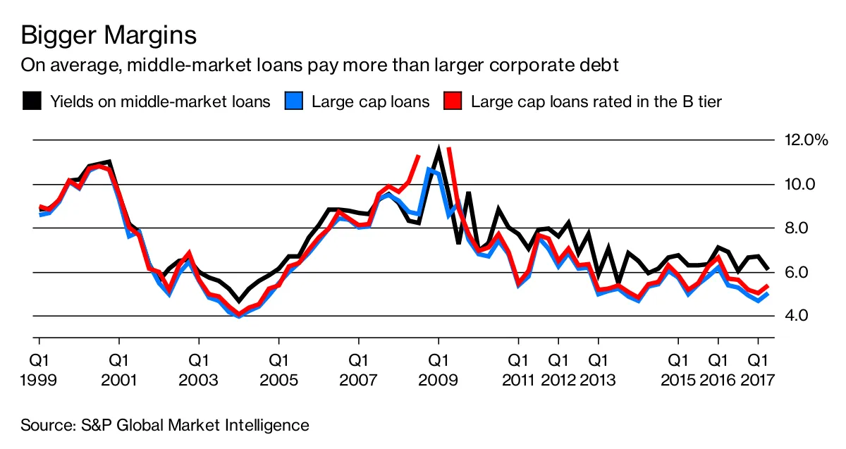 例如,私人公司债券和贷款通常由直接贷款人提供给小型和中型公司,平均收益率高于公开市场债务。