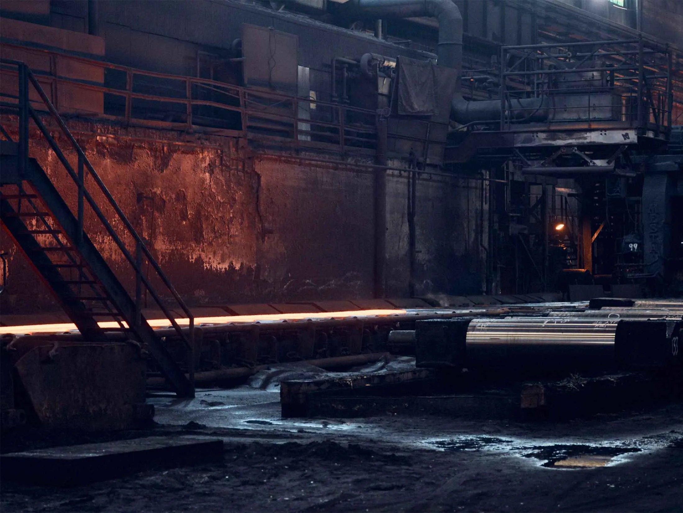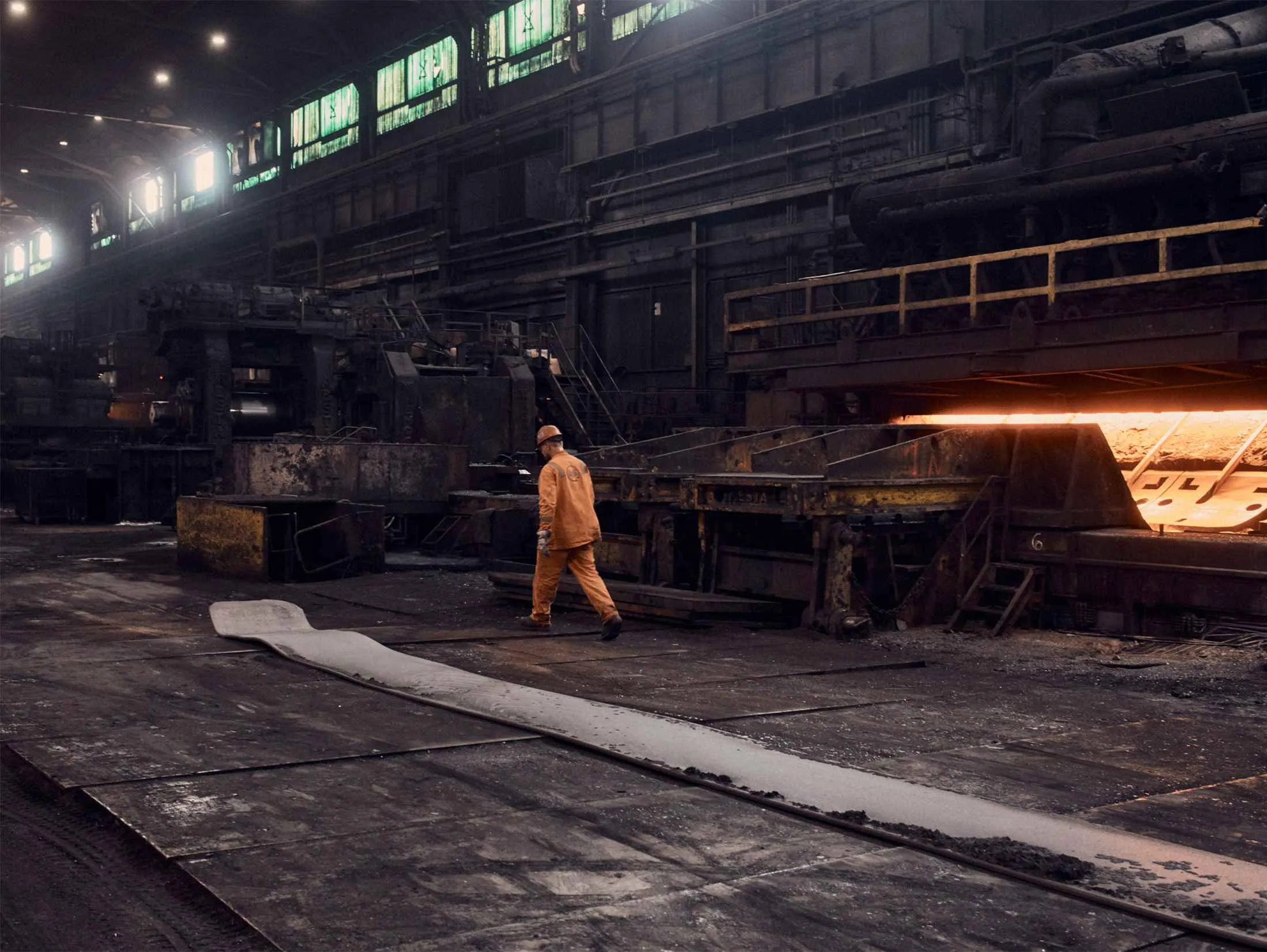 热钢在轧钢厂中移动。摄影师:罗斯·曼特尔,彭博商业周刊