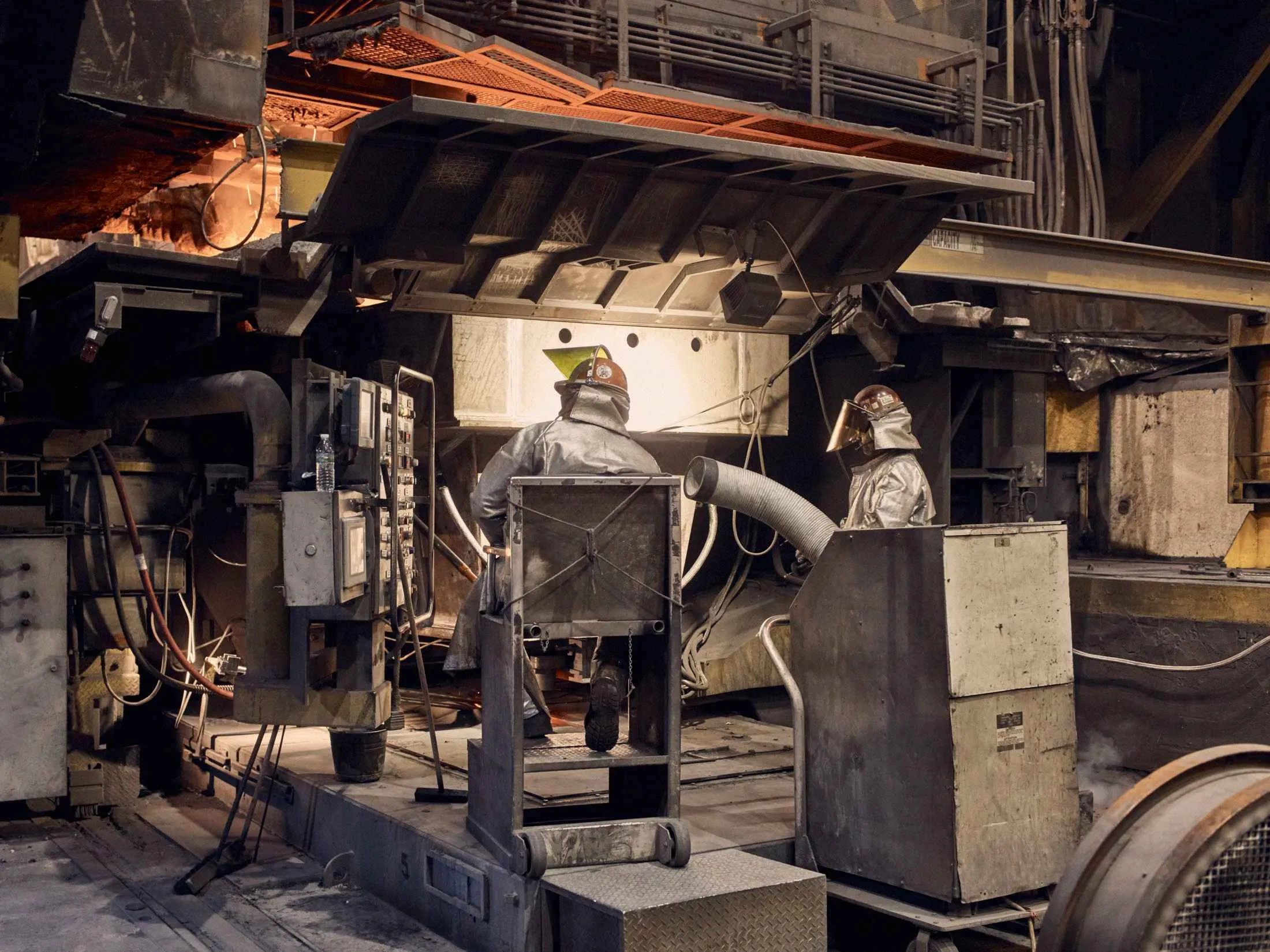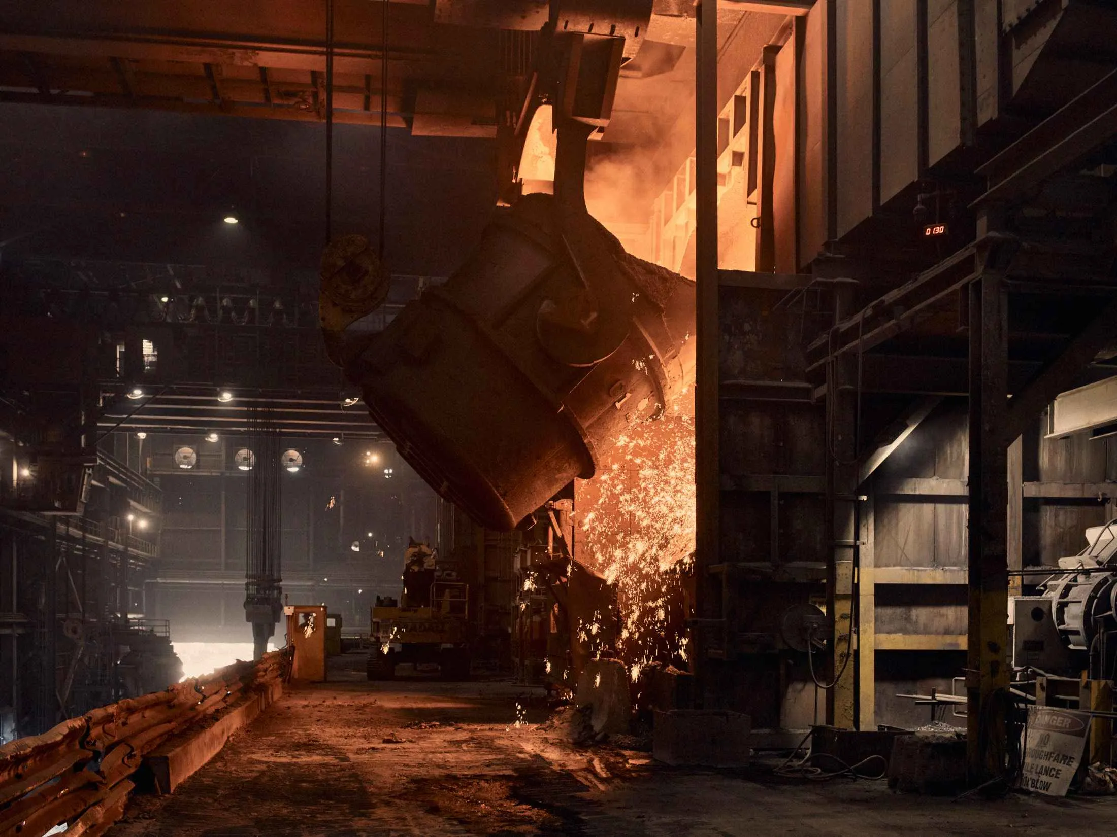 在埃德加·汤姆森工厂将熔融钢水和废料倒入锅中。摄影师:罗斯·曼特尔,彭博商业周刊