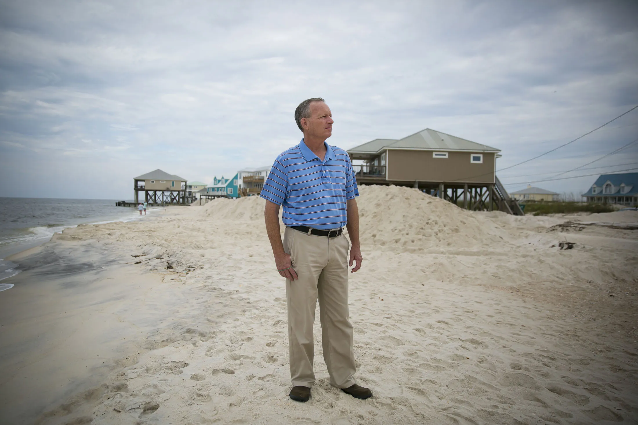摄影师:Nicole Craine/Bloomberg摄影师:Nicole Craine/Bloomberg对像Dauphin Island这样的地方的联邦支付似乎是一种对固执的奖励。1979年,弗雷德里克飓风摧毁了通往该岛的唯一桥梁;在2004年和2005年,伊万和卡特里娜摧毁了大约500栋房屋。联邦资金替换了桥梁和房屋。但岛上的官员们认为他们被抛在了后面,只得到足够的资金勉强维持生计,却不足以应对下一个大风暴。在桑迪飓风之后,华盛顿同意花费近10亿美元来加固新泽西海岸的一段 沙丘。Dauphin Island的市长杰夫·科利尔希望得到同样的待遇。“没有人来强迫我吞沙子,”他说。“我希望他们能来。我们为什么比其他人更可有可无?”