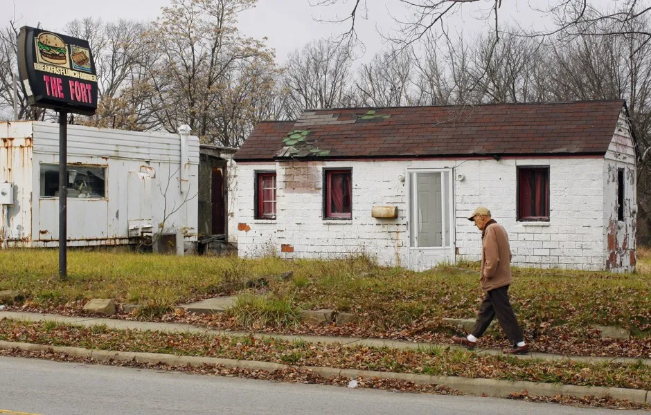 一名男子走过俄亥俄州扬斯敦的一家关闭的商店。布莱恩·斯奈德/路透社几十年来,锈带与去工业化和经济衰退同义。关闭的工厂和被遗弃的社区的图像被称为“废墟色情”。随着工厂迁往郊区、阳光带或海外,工作和人们也随之而去。能够离开的人都搬走了。社区和整个城市失去了经济功能,变得空洞。