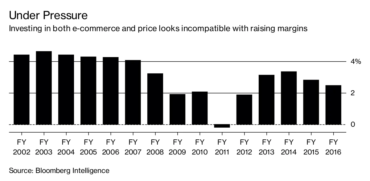 关键在于平衡对技术和价格的投资,同时重新点燃其超级市场的吸引力。这对利润率并不乐观。