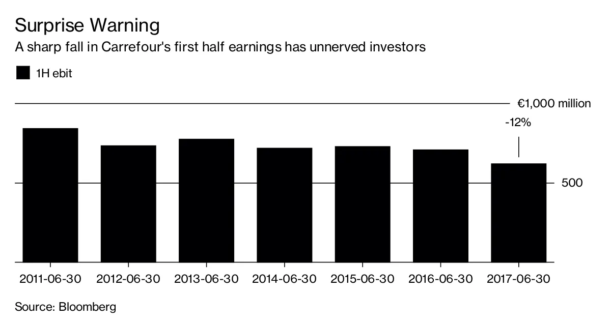 因此,家乐福正在加大自己的降价力度,这也是它在周四发出警告的原因之一,警告下半年将和上半年一样艰难,而上半年基础营业利润下降了12%。