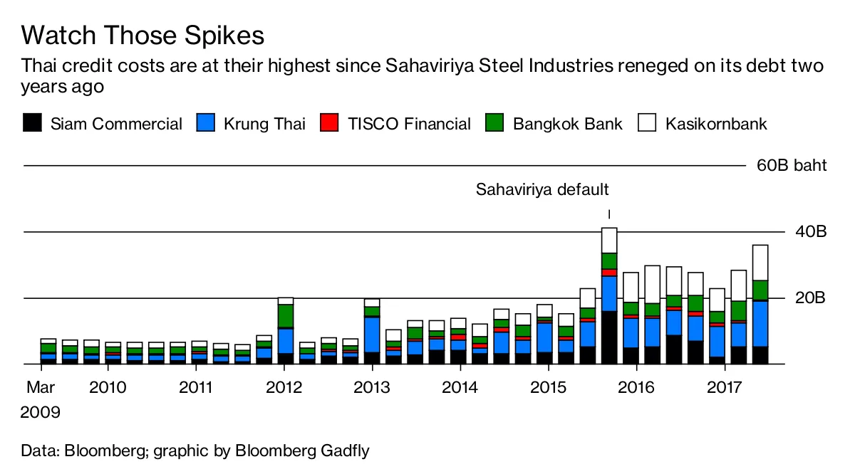 这将是Sahaviriya钢铁工业Pcl的重演。这家钢铁制造商在2015年关闭了其英国炉子,因未能偿还近14亿美元的贷款,这是泰国自泰国石化工业Pcl在1997年亚洲危机中因38亿美元的负债而崩溃以来最大的企业违约。在Sahaviriya崩溃之前,贷方几乎没有做出预防性准备,因此他们不得不匆忙应对。