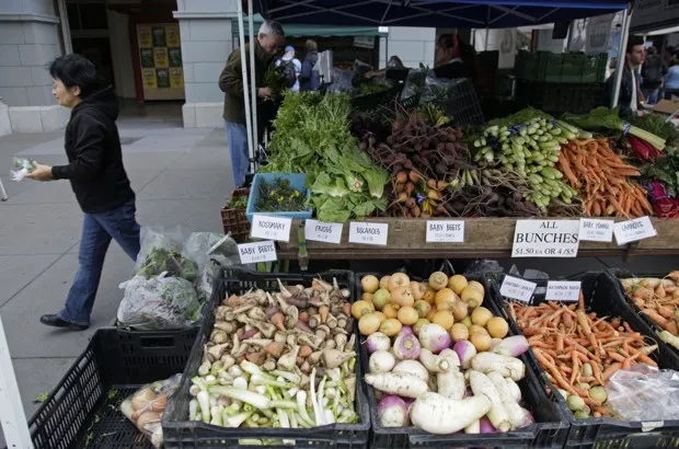 2013年10月,华盛顿特区国会山社区的农贸市场上的购物者乔纳森·恩斯特/路透社如今,似乎本地采购的食品无处不在——尤其是在城市中。曾经只在市政厅前的农贸市场每周早晨提供,现在大多数城市超市、许多 小商店和便利店、 改装的公交车深入社区,甚至直接送到家门口。现在 亚马逊收购了全食超市,有人猜测无人机将在不久的将来为我们送来新鲜的农产品。