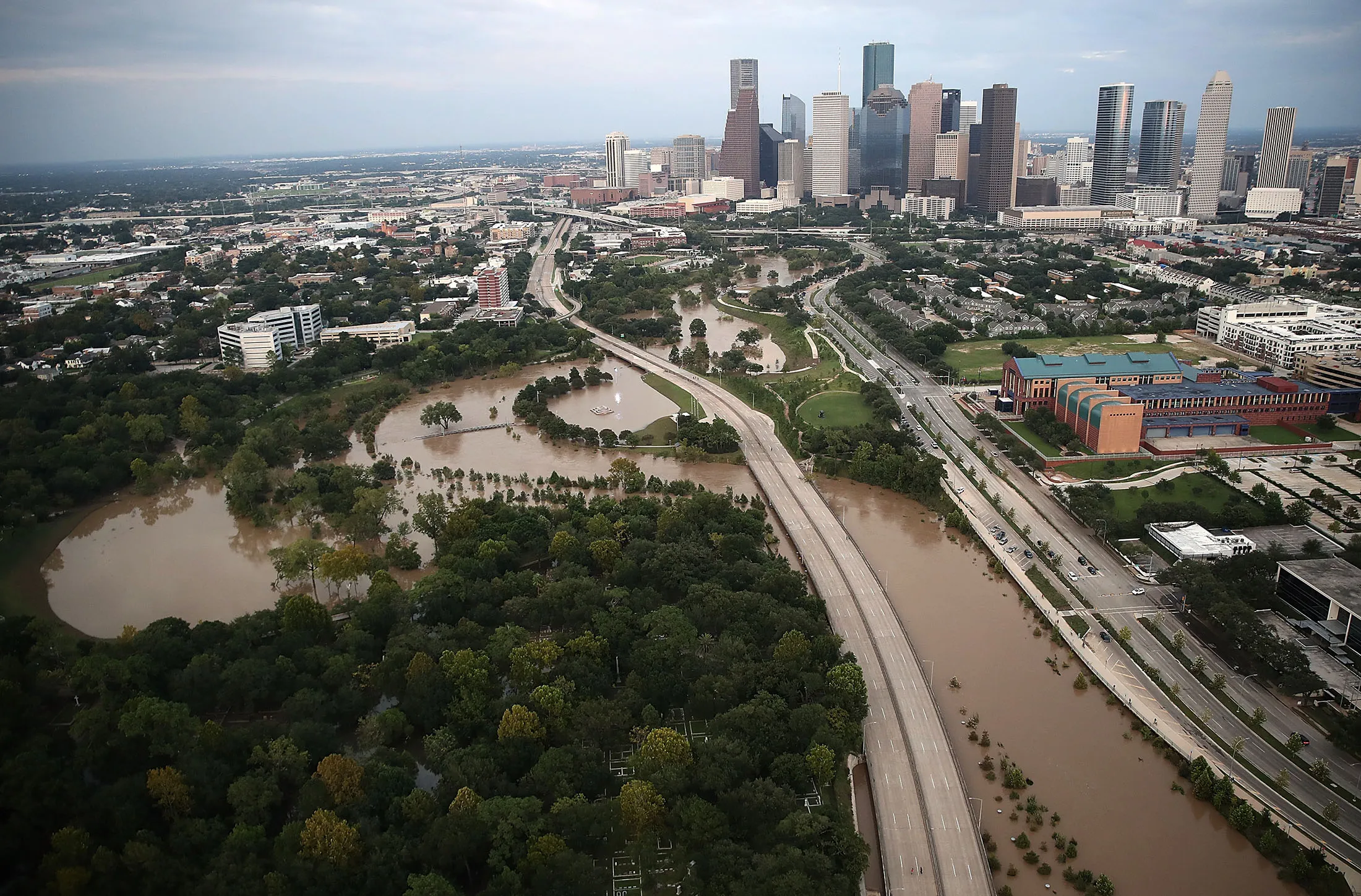 哈维飓风后,休斯顿市中心附近的洪水,拍摄于8月30日。摄影师:温·麦克纳米/盖蒂图片社朱里施克哭了出来。