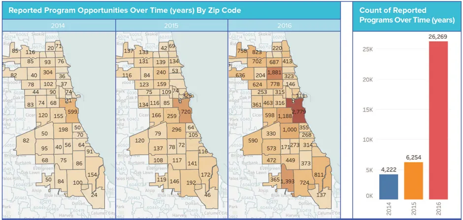 解决方案并不像把任何程序扔进一个服务不足的社区那么简单。直到最近,芝加哥市规模的公平性数据很少,平卡德说。她的非营利组织全年提供课外活动,但“即使对于我们自己的孩子,我们真的不知道他们离开我们后在做什么,”她说。“所以我们意识到这里有一个黑洞。”