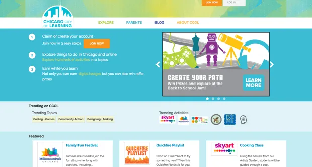 芝加哥学习城市平台的截图。芝加哥学习城市2015年的一项初步研究结果表明,解决方案并不像把任何程序扔进一个服务不足的社区那么简单。平卡德和她在德保罗大学及科罗拉多大学博尔德分校的前同事分析了3,400个CCOL账户的数据,将样本限制在仅居住在芝加哥市内并获得至少一个参与“数字徽章”的学生。(她说,数据仅以汇总形式分析,以维护学生的隐私。)