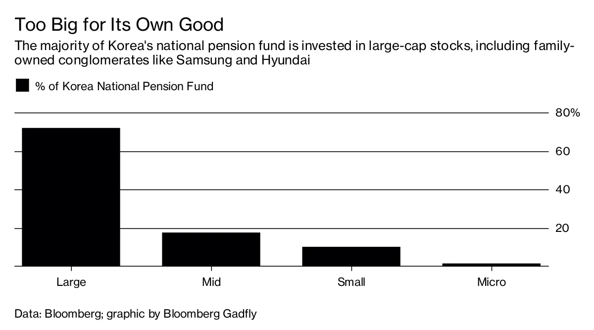 - **走向全球:**NPS主要投资于韩国公司。尽管在这方面取得了一些进展,外国资产的比例从2012年的8%提高到2016年的15.3%,但进一步增加国际持有量将有助于专业化该基金。