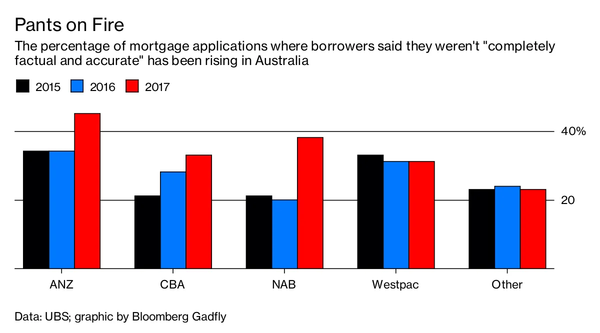 当然,联邦银行在瑞银的调查中并不是最糟糕的违规者,其不准确的抵押贷款申请占其总数的33%,而澳大利亚国民银行有限公司为38%,澳大利亚和新西兰银行集团有限公司为45%。尽管如此,调查结果显示过去三年标准的持续恶化——而 CBA的4170亿澳元抵押贷款组合是全国最大的,占所有未偿还住房贷款的约26%。
