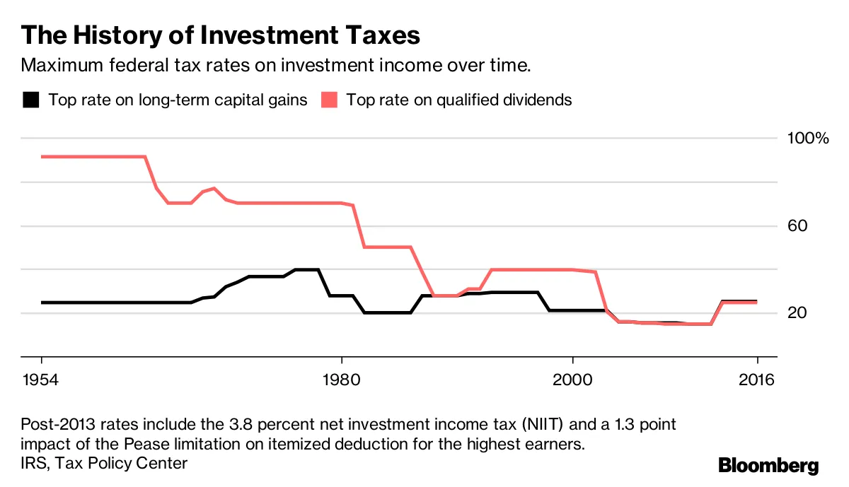 美国历史上最著名的经济繁荣发生在第二次世界大战后,当时股息的最高税率在70%到90%之间。1980年代末和1990年代初,对富裕投资者的增税也带来了快速增长。十多年后,经济大萧条淹没了当时总统乔治·W·布什减税的任何可想象的好处,后者将股息的最高税率减半。