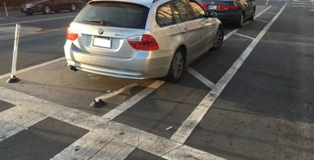 但在奥克兰,官方批准的柱子显然遭遇了困境。在最近的一次走访中,我在六个街区内数到了十多个“死去的士兵”。这些无效的柱子可能会影响整体安全,甚至可能增加城市的更换成本。奥克兰表示,这条被视为“高伤害走廊”的动脉的情况将会改善,因为它正在推进其电报大道完整街道项目。计划于2018年底进行的建设可能会在停车和骑行车道之间增加更多“垂直分隔物”,并为自行车道提供“路缘保护”。