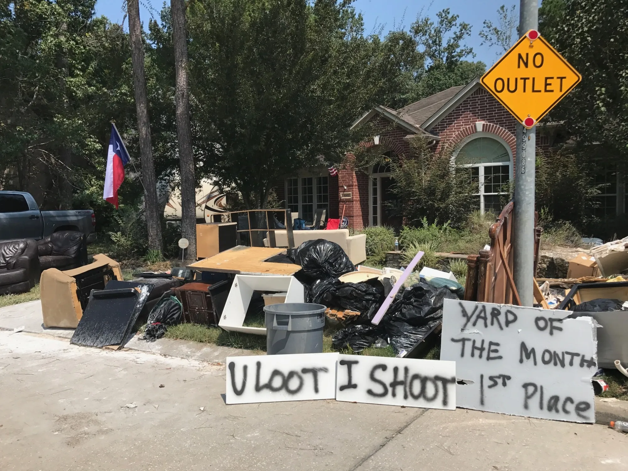 提到那些激进、不道德的竞争对手时,琼斯变得激动,他说这些人给他的行业带来了坏名声。潜在客户可能会因为被阴暗的报价所淹没而变得烦躁,更不用说小偷了。在德克萨斯州,他们并不害羞于保护自己。在休斯顿东北部,居民们在他们的德克萨斯州旗帜和一堆沙发、橱柜和床架前竖起了一个巨大的喷漆标语:“你抢我就开枪,”上面写着。