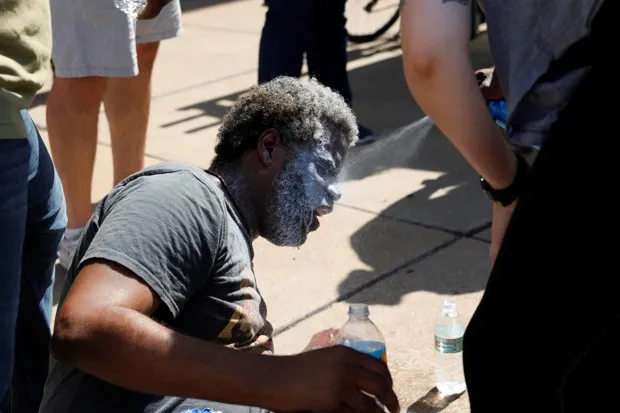 一名抗议者在被圣路易斯警方喷洒胡椒喷雾后接受治疗。惠特尼·柯蒂斯/路透社在一份声明中,克鲁森表示她对安东尼·史密斯所发生的事情“感到震惊”。